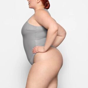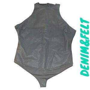 SKIMS FAUX LEATHER HIGH NECK BODYSUIT | Color: Carbon | NEW/NWT!!🩶🩶