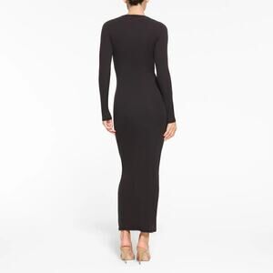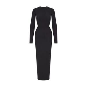 SKIMS Fits Everybody Dress Crew Neck Long Sleeve Bodycon Maxi Onyx Black NWT XS