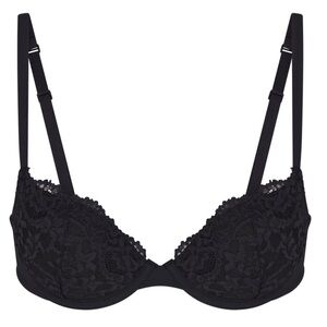 SKIMS Fits Everybody Lace Push-Up Demi Bra, 36C, ONYX