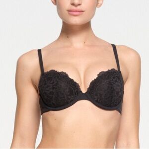 SKIMS Fits Everybody Lace Push-Up Demi Bra, Size 36C, ONYX