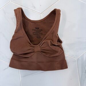 Experience comfort and style with this elegant tan bralette, featuring delicate lace trim. Perfect for everyday wear.