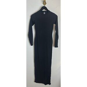 SKIMS Fits Everybody Long Sleeve Crewneck Dress in Onyx Black Size Medium