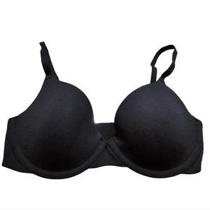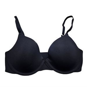 Unlined cups, adjustable straps, and hook and eye back closure.