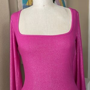 SKIMS Fuchsia Foil Ribbed Ling Sleeve Maxi Dress NWT