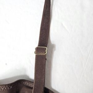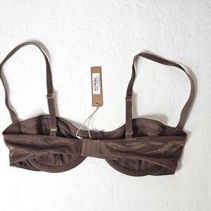Pretty and comfortable. Slight shimmer to fabric. Demi cup bra with underwire, adjustable straps and hook and eye back closure. Mesh lined. Jasper color.