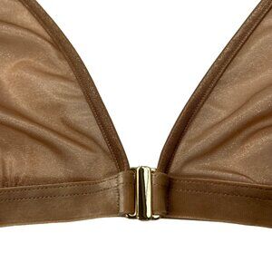 A sexy update to the classic triangle bralette. Fall in love with its sheer fabric, golden front closure, and velvet trim.