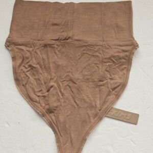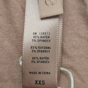 Soft and very comfortable. Hi cut, wide waistband Camel color, size xxs. Fabric is rayon spandex with cotton lined gusset.