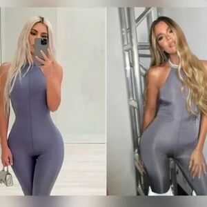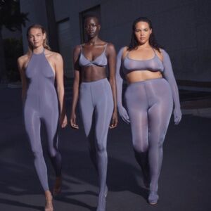 SKIMS Jelly All-In-One Mock Neck Halter Full Bodysuit Catsuit Steel Blue XL NEW