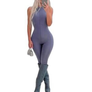 SKIMS Jelly All-In-One Mock Neck Sleeveless Full Bodysuit Catsuit Steel Blue 3X