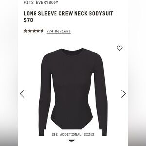 SKIMS LONG SLEEVE CREW NECK BODYSUIT Size S Small Onyx Black NEW NWT