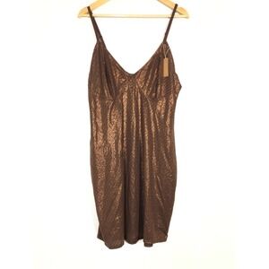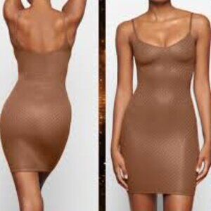 SKIMS Logo Mesh Foil Cami Slip Sleeveless Bodycon Mini Cocoa Brown NWT Size 4X