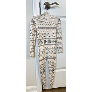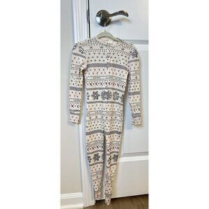 SKIMS Logo Pointelle Henley Onesie in Cream Fair Isle Size 3T