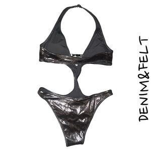 SKIMS METALLIC SWIM HALTER MONOKINI |STYLE: OP-CKY-2807 | COLOR:CARBON | NEW/NET