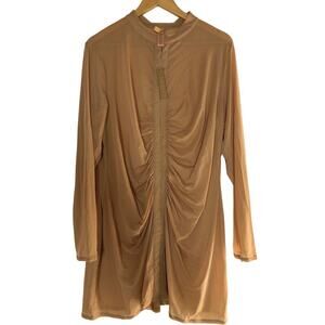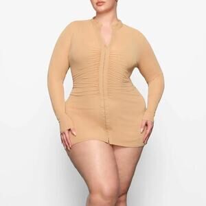 SKIMS Mesh Cover Ups Dress Long Sleeve Ruched Hook & Eye Closure Ochre NWT 4X