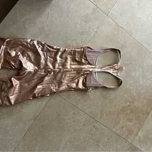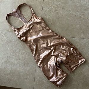 Brand: SKIMS Name/Description: Metallic Swim Cycle Suit Style: SW-BSS-0041 Color: Champagne Size: Women’s Small Fit: - Refer to SKIMS size chart - Length shoulder to hem: 29” Fabric: - Body: 82% Nylon, 18% Spandex - Lining: 85% Recycled Polyamide, 15% Spandex Care: Rinse cold water/Hand wash cold/ Flat dry SKIMS Description: One-and-done sporty swimwear? Check. This body-hugging cycle suit features a racerback, mid-thigh silhouette that is perfect for high-impact water activities and sporty days in the sun. Fits true to size. Features: - Front scoop neckline - Racerback straps - Hits at mid thigh (5” Inseam) - Fully lined - Brilliant metallic-tone fabric - Perfect for an active lifestyle!