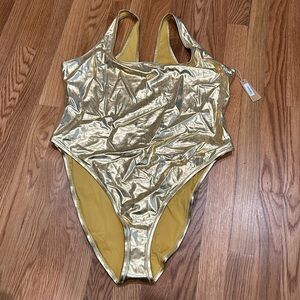 SKIMS Metallic Swim High-Cut One-Piece Gold plus size 4X women’s new with tags