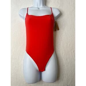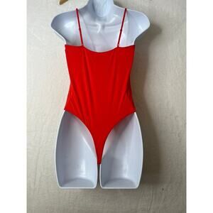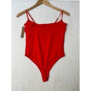SKIMS NWT Fits Everybody Cami Thong Spaghetti Strap Bodysuit Poppy Sz L Sexy