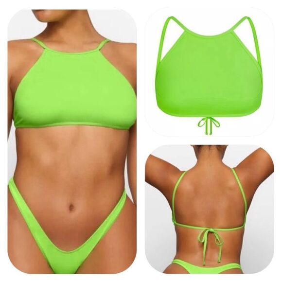 SKIMS NWT High Neck Bikini Top in Neon Green size M