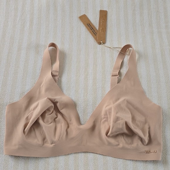 Flattering Plunging Neckline, Unlined Cups, Wireless For Maximum Comfort, Fully Adjustable Straps, Hook And Eye Back Closure, Clean, Smoothing Wing That Offers Extra Support Along Side, Tonal Matte 3D Silicone SKIMS Logo On Wing