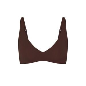 Ultimate comfort and buttery-soft support meet a flattering wireless plunge silhouette that molds to your body. This stretchy style has unlined cups and extra coverage on side wings for a super smooth look. Features adjustable straps, tonal matte 3D SKIMS logo, and hook and eye back closure. Fits true to your SKIMS bra size.