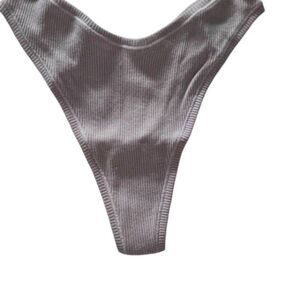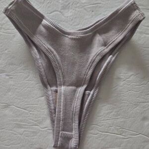 Pretty pale purple color called Iris Mica, size xxs. Fabric is cotton elastane with cotton lined gusset. Figure flattering V cut, thong back.