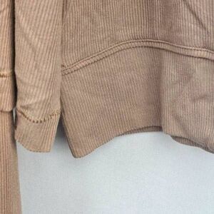 Beautiful pajama set. Collared, covered button front top with one chest pocket &, long sleeves. Extra covered button. Pants are pull on style with wide elasticized waistband and inside drawstring tie. Ribbed Fabric is modal spandex, color is Sienna, size 4x. Soft soft and comfortable!