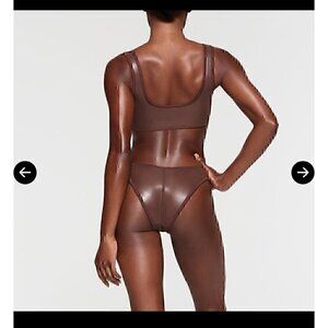 SKIMS RUBBERIZED SCUBA SWIM/TOP, FRONT ZIPPER, COCOA COLOR, 4X