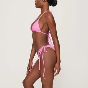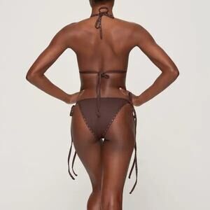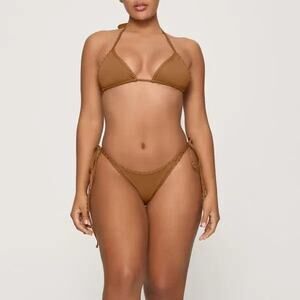 Featuring a classic triangle silhouette with tonal rhinestone detailing on the binding and neck ties for added sparkle. Designed to pair seamlessly with coordinating tie bottoms. Crafted for a flattering, secure fit. Fits true to size