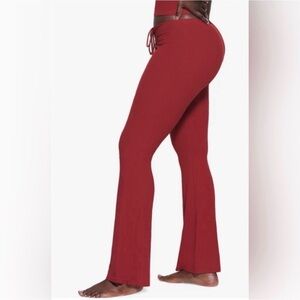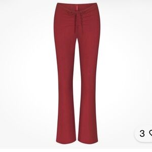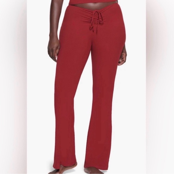 SKIMS Ribbed Drawstring Boot-Cut Pants in Deep Red