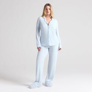 SKIMS SOFT LOUNGE LONG SLEEVE SLEEP SET IN BLUE QUARTZ SIZE SMALL