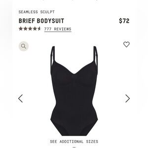 SKIMS Seamless Sculpt Brief Bodysuit Onyx XXS/XS New