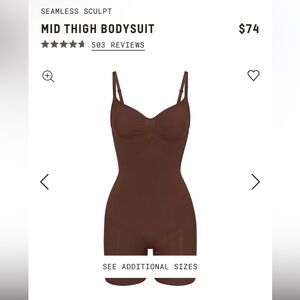 SKIMS Seamless Sculpt Mid Thigh Brief Bodysuit XS COCOA NEW