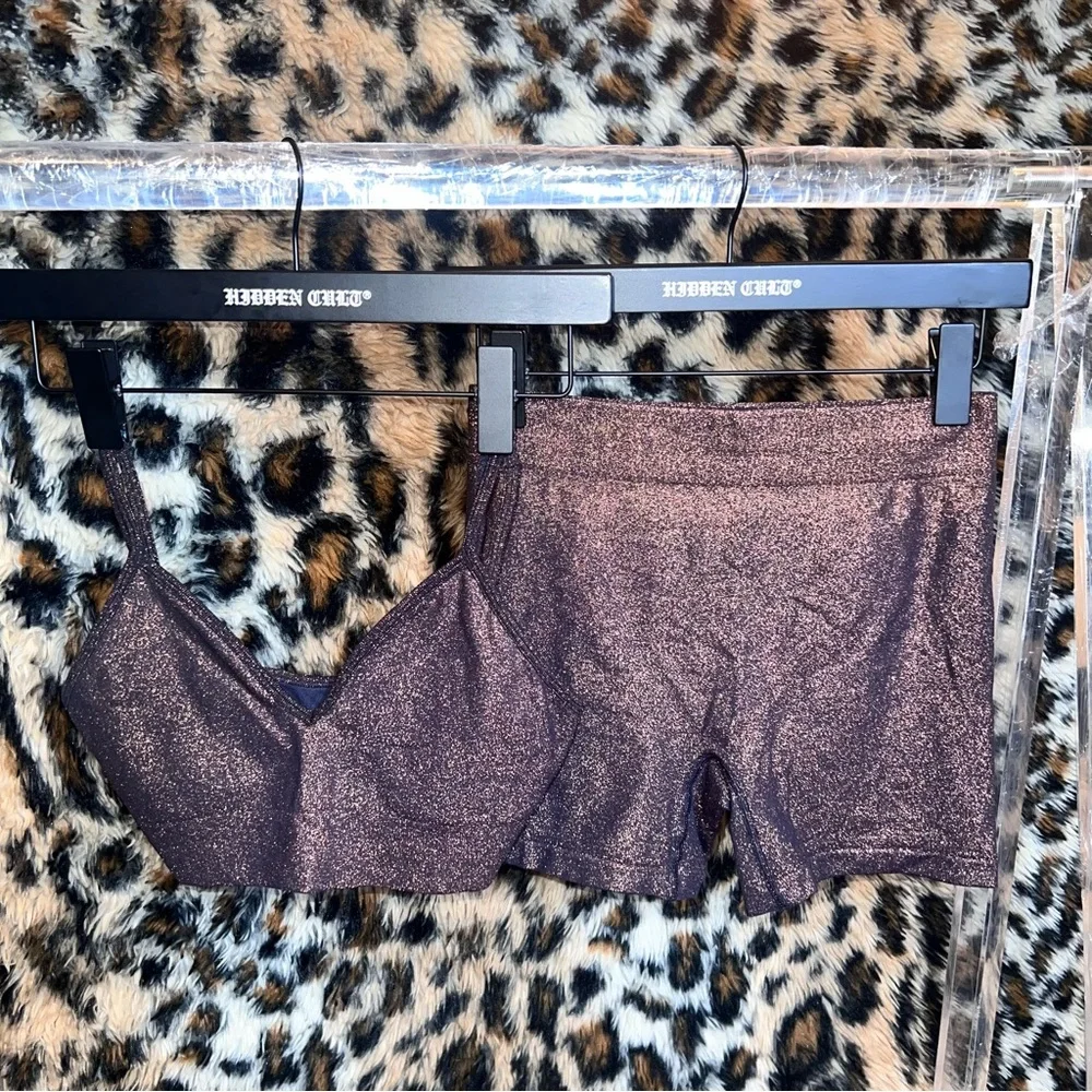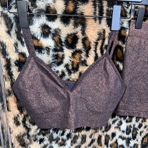 New without tags SKIMS bralette & shorts set in size medium. Copper glitter color. Never worn, just tried on. No longer available on their site.