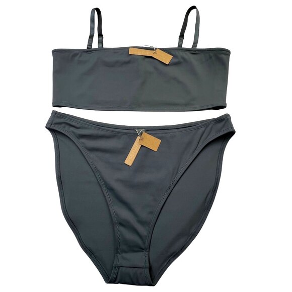 SKIMS Shaping Swim Set Bandeau Top + Dipped Bikini Bottom Gunmetal 3X