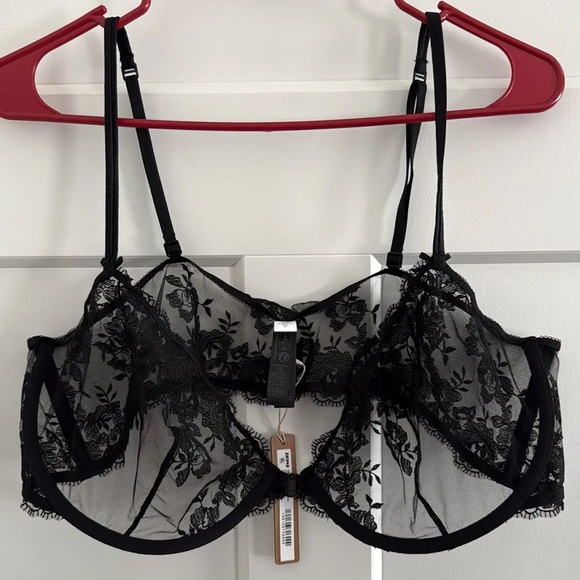 SKIMS Sheer Black Floral Lace Bra