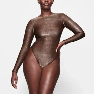 SKIMS Shimmer Long Sleeve Bodysuit in Copper Metallic - Size 3X