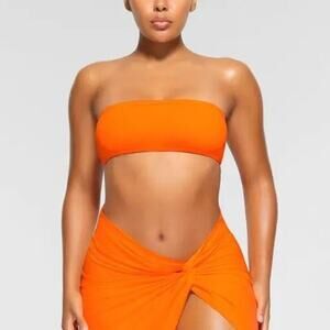 SKIMS Signature Swim Bandeau Bikini Top Strapless Swimwear in Orange NWT XXS