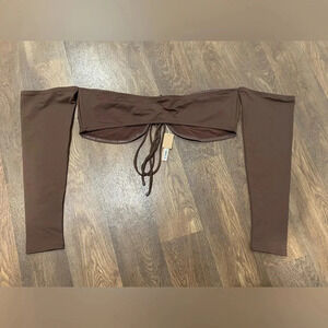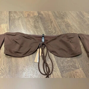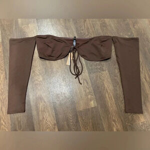 SKIMS Signature Swim Long Sleeve Bikini Top Cocoa Brown Size 4X New with Tags