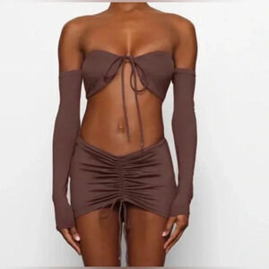SKIMS Signature Swim Long Sleeve Bikini Top Cocoa Brown Size 4X