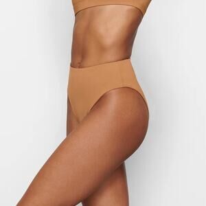 SKIMS Signature Swim Mid Waist High Cut Almond Brown Bikini Bottoms Swimsuit