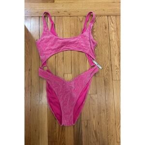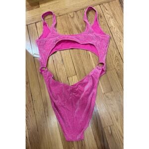 SKIMS Size 4x Magenta Pink Glitter Sparkle One Piece Swimsuit Sexy Cut Out Monokini