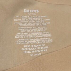 These Skims Foundations leggings offer a smooth, comfortable fit with a blend of recycled nylon and spandex. Designed in a sand color, they are suitable for a professional wardrobe. Crafted with an emphasis on sustainability, they provide a high waist and seamless design, ideal for layering under various outfits.