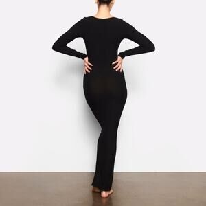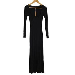 SKIMS Soft Lounge Dress Long Sleeve Square Neck Bodycon Maxi Onyx Black NWT S