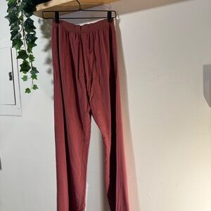 Ultra-soft SKIMS pajama pants in a muted mauve/rose tone with a relaxed, drapey fit. Designed for comfort with a stretchy waistband and fluid silhouette that moves easily from lounging to sleepwear. Lightweight, breathable fabric with a smooth hand feel—perfect for cozy nights, travel, or elevated at-home wear. Minimalist and flattering with an effortless, modern look.