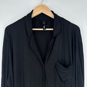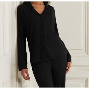SKIMS Soft Lounge Ribbed Sleep Top Button Down Shirt Modal Jersey in Onyx Black