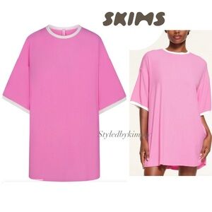 SKIMS Soft Lounge Ringer T-Shirt Mini Dress Blush Multi Small S NEW NWT