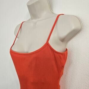 Orange spandex bodysuit with built-in shelf bra and adjustable straps. Size L. Like new condition.