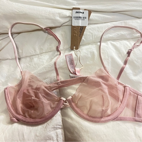 Delicate sheer bra by SKIMS. Soft pink hue. Perfect for everyday elegance.