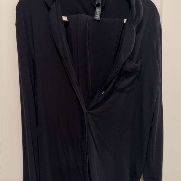 SKIMS modal ribbed PJ set, full length pants and long sleeve top. All buttons are tight and in working order. This set has been barely worn. I recently had a baby and these no longer fit- my loss is your gain!