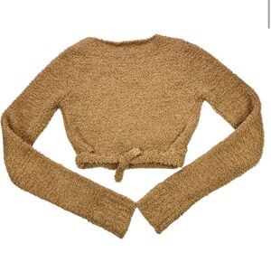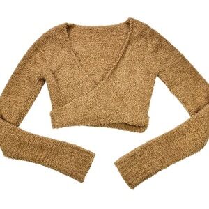 SKIMS Tan V-Neck Cropped Sweater